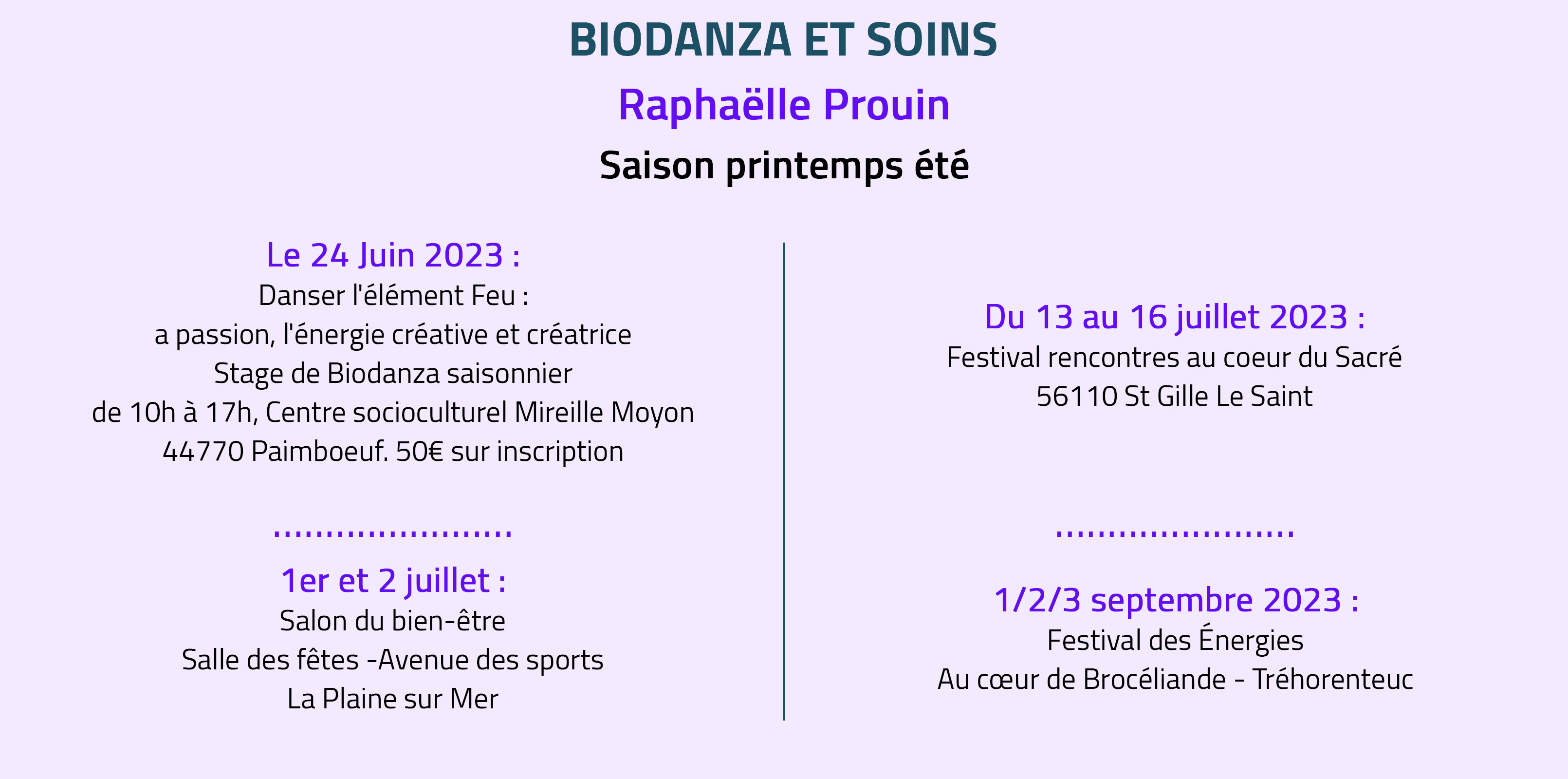 Je suis Raphaëlle, passionnée par la danse depuis mon enfance, j’anime aujourd’hui des ateliers de Biodanza, "la Danse de la Vie" : un appel à la joie, à s'épanouir dans le plaisir du mouvement dansé, sur des musiques du monde entier et dans la rencontre fraternelle.